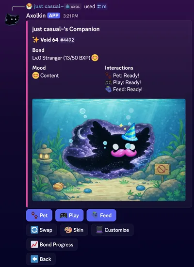 Every Axol you own can become your companion — a partner that grows stronger the more time you spend together. As your bond deepens, you’ll unlock perks that boost your earnings, improve your odds in minigames, and more.