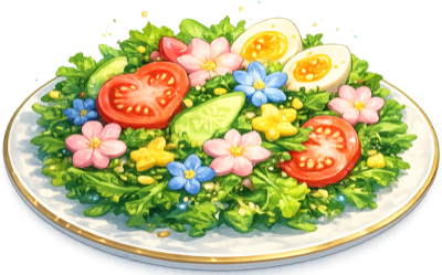 | Bloom Salad | 1 Abyssal Bloom, 1 Brine Mushroom, 3 Sea Glass, 2 Eggshell Fragments | 50,000 | 🌿 Green Thumb (60 min) | |